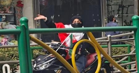 دختر باحجاب سوار بر موتورش به راهپیمایی آمد